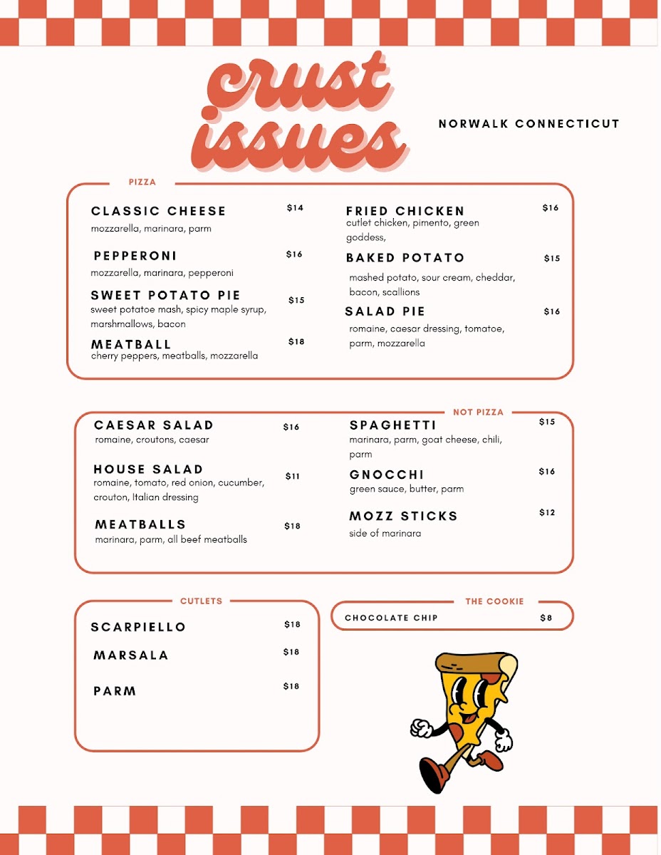 Looking for a slice of heaven in Norwalk? Crust Issues Pizza Menu has you covered. Located at 60 Connecticut Ave #3530, this spot serves up pizzas that hit all the right notes, whether you’re a fan of classic flavors or something more adventurous. Each pizza is crafted with care, featuring a perfect crust that strikes the ideal balance between crispy and chewy, topped with fresh ingredients that will have you coming back for more. From crowd-pleasing Margherita to bold specialty pies, there’s something to satisfy every craving. Whether you’re grabbing a quick lunch or sharing a meal with friends, Crust Issues is your go-to place for delicious pizza.